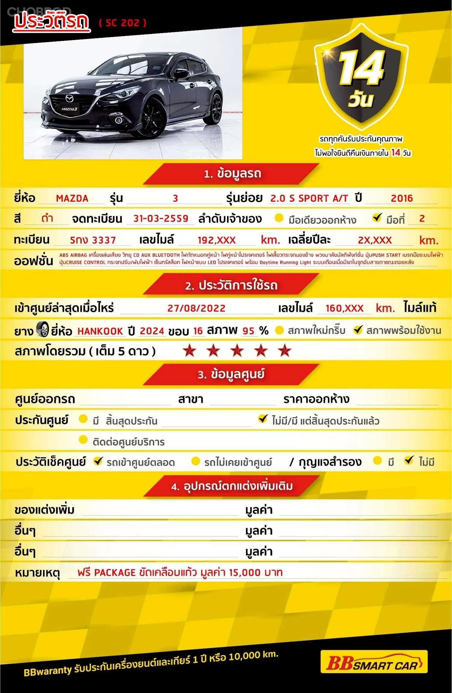 5C202 ขายรถ MAZDA 3 2.0 Sports (5Door) 2016 สภาพดี ราคาถูก