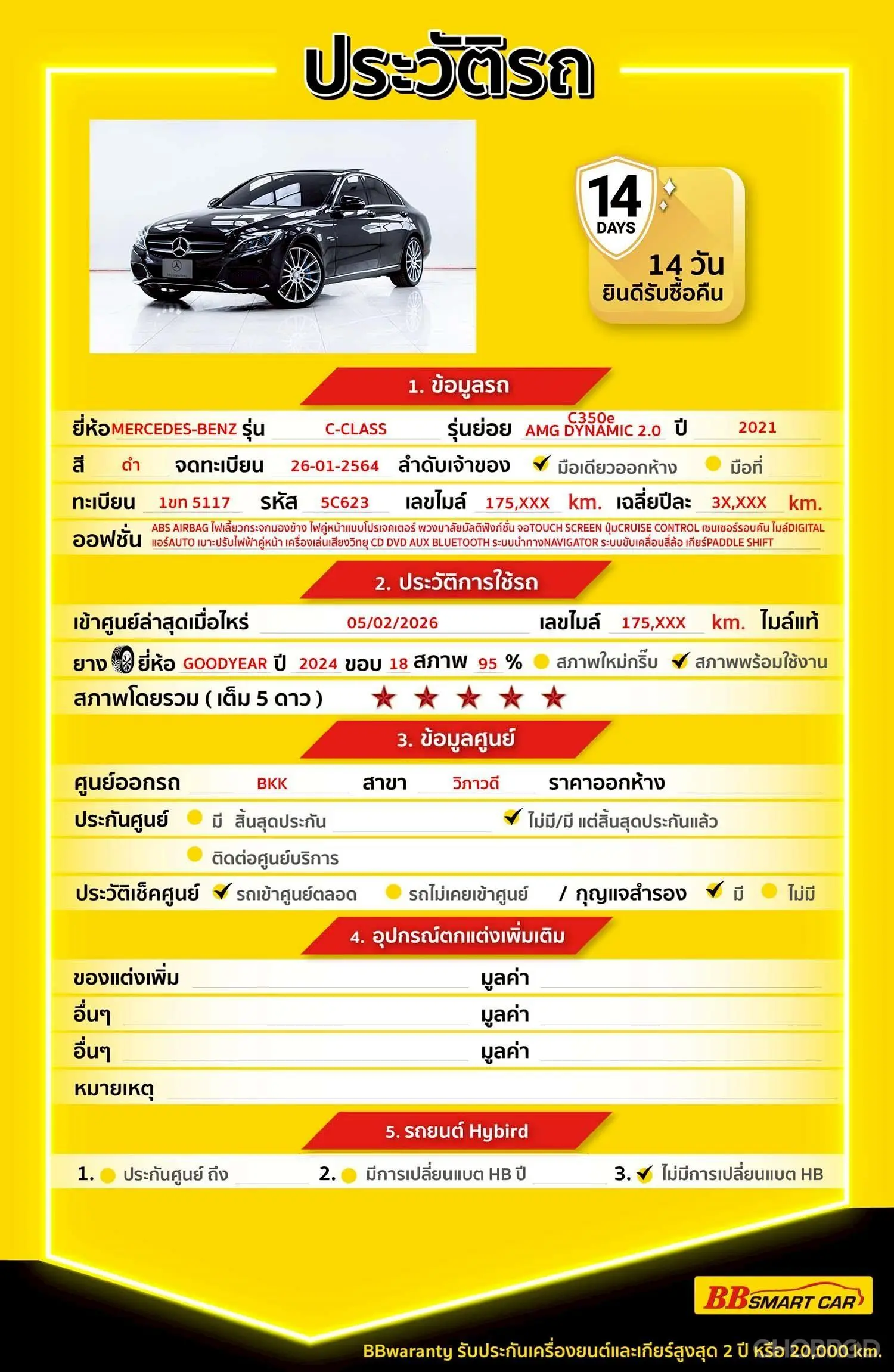 5C623 Mercedes-Benz C-Class C350e AMG DYNAMIC 2021 รถมือสองสภาพดี