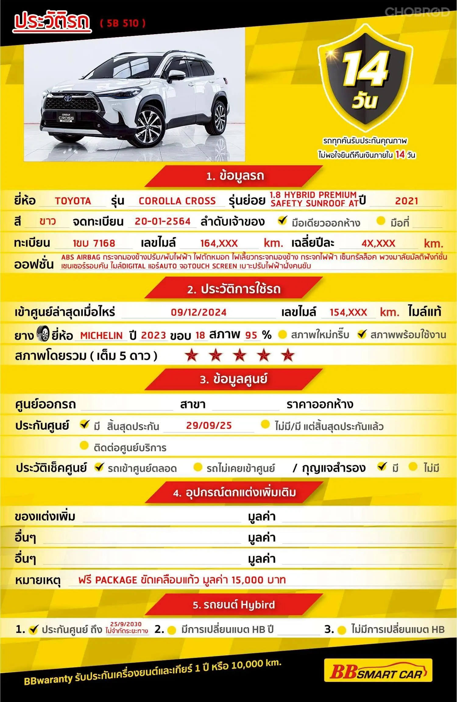 5B510 Toyota Corolla Cross 1.8 Hybrid 2021 รถ SUV สภาพดี ราคาถูก