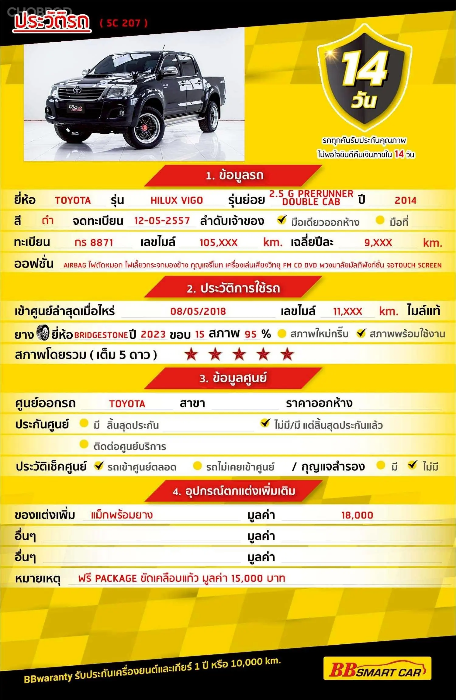 5C207 Toyota Hilux Vigo 2.5 Prerunner 2014 รถกระบะมือสองสภาพดี