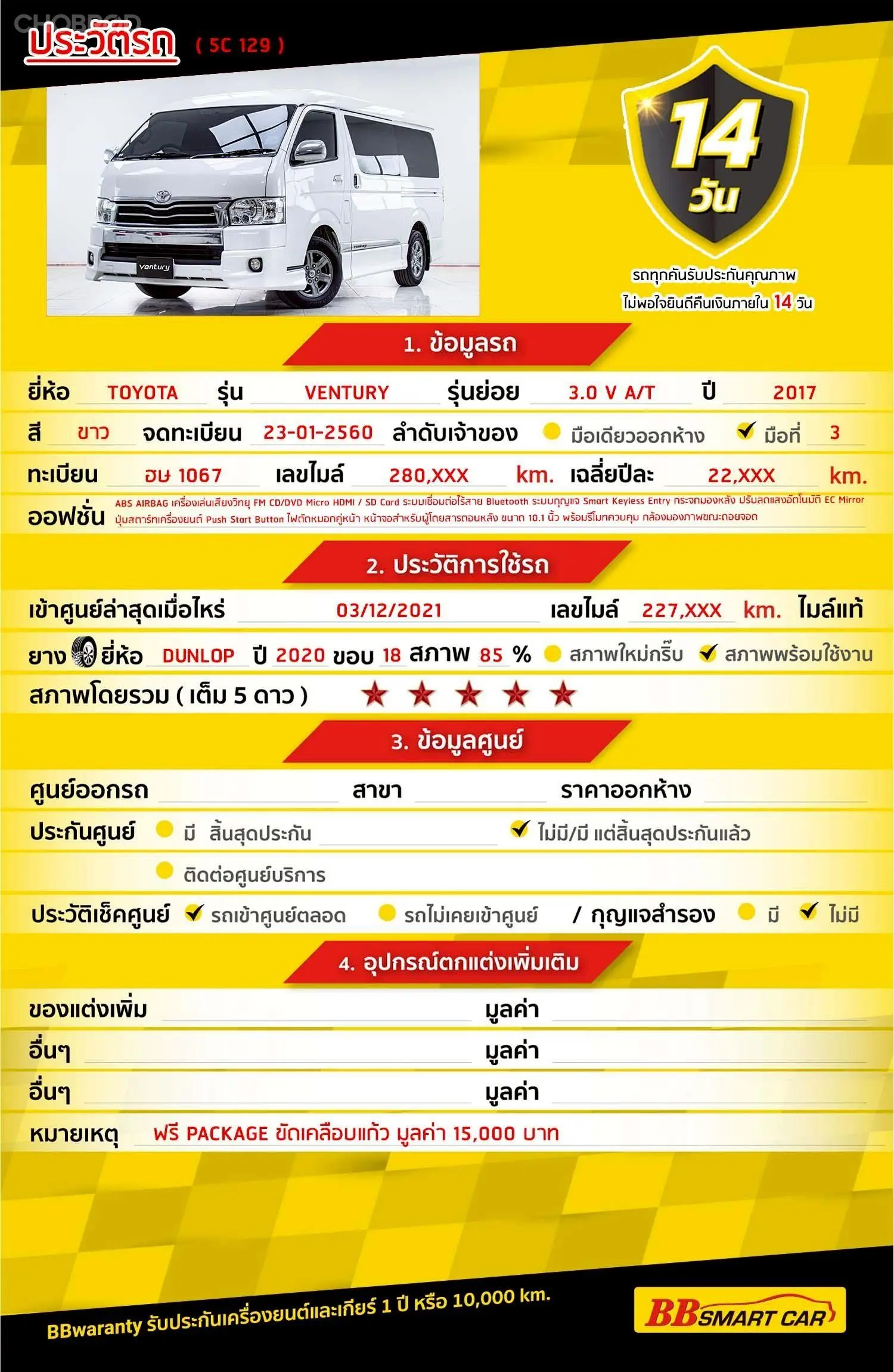 TOYOTA VENTURY 3.0 V AT 2017 ออกรถ 0 บาท จัดได้ 724,000 บ. Line:@*******แสดงข้อมูล 🔥จอง 199 บาท ส่งบัตรประชาชน รู้ผลพิจารณาภายใน 30 นาที ไม่ผ่านคืนเงินจองทุกกรณี 🔥ซื้อรถกับ BB พร้อมให้คำปรึกษา แก้ทุกปัญหา ให้ทุกเรื่อง บริการ call center 24 ชม. 🔥BB Care Plus รับประกันหลังการขาย สูงสุด 2 ปี หรือ 20,000 km. 🔥มีรถให้เลือกมากกว่า 1,600 คัน สาขา5 ถ.เศรษฐกิจ ใกล้โลตัสมหาชัย รหัสรถ 5C129 ราคา 704,000 บาท ผ่อนเพียง 12,550 บาท Brand. : TOYOTA Year. : 2017 Model. : VENTURY Grade. : 3.0 V Engine. : 3000 CC Type. : ดีเซล Gearbox : A/T Color. : ขาว Mileage. : 280,XXX KM. (ซื้อสด ราคานี้ยังไม่รวมค่าดำเนินการ 10,000 บ.) 🚩 Price. 704,000 บาท ยอดจัด : 714,000 บาท เงินดาวน์ : 0 บาท ประกันภัย : ฟรีประกันภัย 1 ปี ค่าดำเนินการ : 10,000 บาท รวมออกรถ : 0 บาท ผ่อน 36 งวด = 23,736 บาท ผ่อน 48 งวด = 18,393 บาท ผ่อน 60 งวด = 15,316 บาท ผ่อน 72 งวด = 13,756 บาท ผ่อน 84 งวด = 12,550 บาท เงื่อนไขเป็นไปตามที่ไฟแนนซ์กำหนด โปรโมชั่นพิเศษ สำหรับลูกค้าเครดิตดีลือกรับเรทดอกเบี้ยพิเศษ 📍36 งวด = 1.29 % 📍48 งวด = 1.99 % 📍60 งวด = 2.39 % 📍72 งวด = 3.59 % 🔥เงื่อนไข โปรโมชั่น ดอกเบี้ยเริ่มต้น 1.29% ตลอดอายุสัญญา - ยอดจัดไฟแนนซ์ 300,000-600,000 บาท - ผ่อนสูงสุด 72 เดือน - เป็นลูกค้าประวัติดี พนักงานประจำเงินเดือน 20,000 ขึ้นไป - ค่าดำเนินการแคมเปญ 20,000 บาท (รวมในยอดจัดได้) 🎗Car Hightlight รถสวยๆ วันนี้ขอแนะนำ TOYOTA VENTURY 3.0 V AT ดีเซล จุดเด่นออฟชั่น 1 : ประตูข้าง 2 ฝั่ง 2 : กระจกมองข้างปรับไฟฟ้า 3 : จอ LCD เล่น DVD 🎗ภายใน. Airbag วิทยุ - CD กระจกไฟฟ้า แอร์ เบาะหนัง จอ LCD เล่น DVD เซ็นทรัลล๊อก พวงมาลัยเพาเวอร์ กระจกมองข้างปรับไฟฟ้า เบรค ABS 🎗ภายนอก ตัวรถสีขาวมาพร้อม ไฟตัดหมอก กระจกมองข้างพับไฟฟ้า กระจกข้างโครเมี่ยม รถสวยไม่มีชนหนักแน่นอนค่ะ 🎗ความคุ้มค่า สำหรับคันนี้หากเปรียบเทียบราคากับคุณภาพ คันนี้ถือว่าคุ้มค่ามากค่ะ ผ่อนสบายๆก็มีรถขับได้ รถดีมีคุณภาพแบบนี้รีบตัดสินใจซื้อได้เลราคานี้มาไวไปไวนะคะ ⭐️การรับประกันหลังการขาย BB Care Plus สูงสุด 2 ปี หรือ 20,000 km. ด้วยช่างที่ผ่านการอบรมจากศูนย์ชั้นนำของประเทศ 🎉Special offer เฉพาะ บีบีสมาร์ทคาร์ ที่นี่ที่เดียว ⭐ดอกเบี้ยเริ่มต้น 1.29% มีไฟแนนซ์รองรับหลายที่ค่ะ ⭐ฟรี!! แพคเก็จ ขัดเคลือบแก้ว มูลค่า 15,000 บาท ทุกคัน ⭐อนุมัติไว 30 นาที นำเอกสารมาให้ครบรับรถกลับบ้านทันทีค่ะ ⭐BB Care Plus รับประกันหลังการขาย สูงสุด 2 ปี หรือ 20,000 km. ⭐มี 6 สาขา ในกรุงเทพและปริมณฑลใกล้บ้านท่าน ⭐รถทุกคันผ่านตรวจสอบ Inspection เรียบร้อยแล้วค่ะ ผ่าน 5 ดาวทุกคันค่ะ ⭐เซลล์ทุกท่านเป็นมืออาชีพพร้อมให้บริการทุกท่านแน่นอนค่ะ